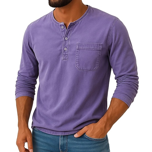 Per uomo Maglia Henley Maglietta Manica Lunga Semplice Vintage Retrò Vintage Casual Con stampe Grafico Henley Casuale Primavera Autunno Tutte le stagioni Viola Grigio scuro Maglietta Henley