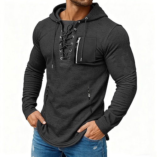 Per uomo Maglietta Manica Lunga Con Cappuccio Primavera Autunno Tutte le stagioni Tinta unica Tradizionale / Vintage Casual Con cappuccio All'aperto Vacanza Casuale Marrone scuro Verde Blu chiaro