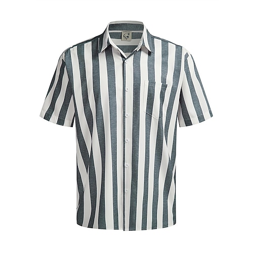 Per uomo Camicia Camicia Estiva Camicia casual Camicia da Spiaggia Camicia con Bottoni Verde chiaro Blu Verde Grigio Manica Corta A righe Bavero Vacanza Camicia hawaiana Abbigliamento Poliestere Moda
