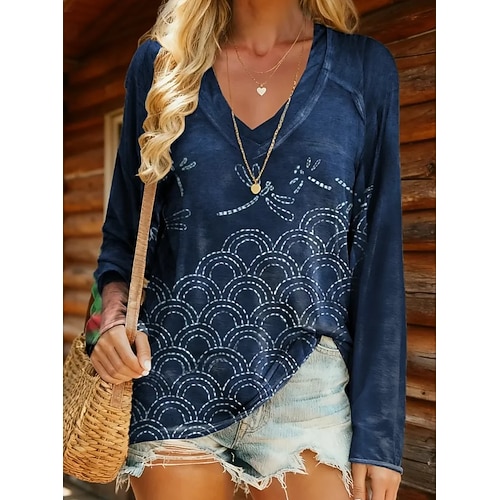 Per donna Maglietta Floreale Grafico Piante Elegante Bohemien Vintage Manica Lunga Scollo a V Top Regolari Quotidiano Uscire Weekend Stampato Blu Verde chiaro Blu turchese Viola Verde Primavera