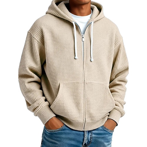 Per uomo Felpa con cappuccio Felpa con cappuccio a zip intera Felpa con cappuccio a nido d'ape Aalbicocca Nero Bianco Verde chiaro Verde militare Con Cappuccio Semplice Testurizzato Sport Outdoor