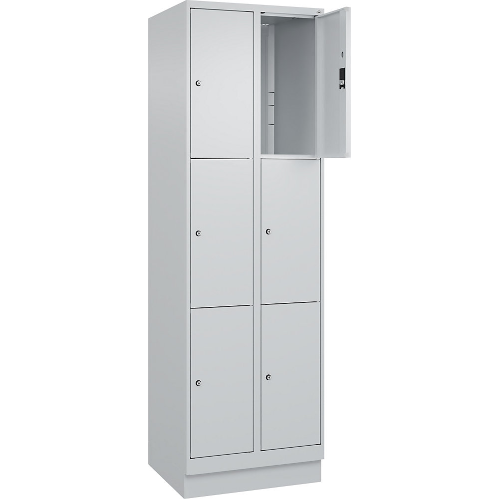 5er-Schließfachschrank Classic PLUS, 2 Abteile, lichtgrau / fernblau, B 600 mm, 10 Fächer, mit Bodengleitern C+P