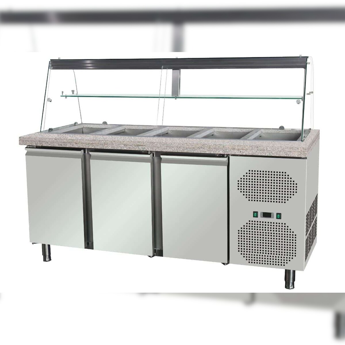 Saladette / Salattheke - 1,88 x 0,82 x 1,40 m - mit 3 Türen - eckigem Glasaufsatz - IDEAL Plus Glasaufsatz 50 cm