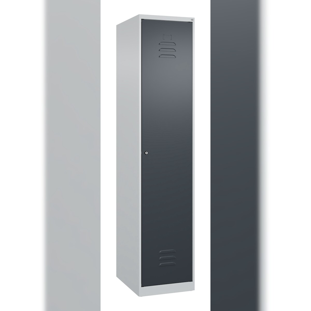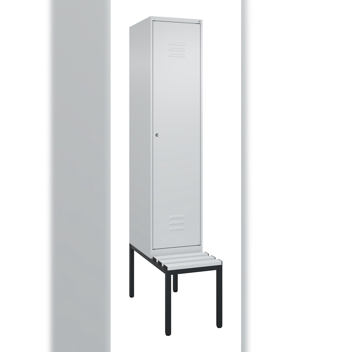 C+P Spind Classic PLUS, Kunststoff untergebaute Sitzbank, 1 Abteil, HxBxT 212x40x82cm, Zylinderschloss, Hellgrau/Hellgrau von PROREGAL