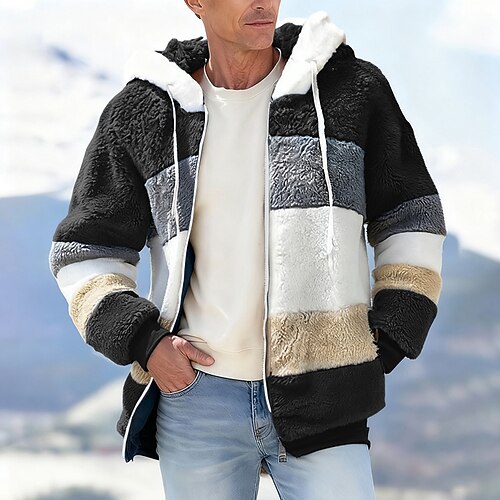 Per uomo Giacca Invernale Cappotto Teddy Vacanza Quotidiano Calore Termico Tasca Pile Autunno Inverno Blocco di colori Moda Streetwear Con Cappuccio Regolare Nero Vino Blu Viola Marrone Giacca