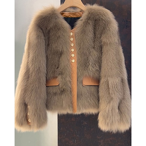 Per donna Cappotto Invernale Cappotto in Pelliccia Sintetica Caldo Confortevole Patchwork Tasca Bottoni Strappati Casual Blocco di colori Vacanza Uscire Weekend Regolare Scollo a V Vestibilit