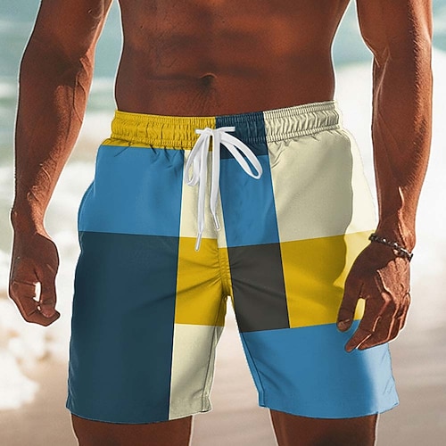 Per uomo Colorato Geometrico Blocco di colori Costumi da bagno Pantaloncini da mare Pantaloncini da Surf Misura del girovita medio Casual All'aperto Vacanza Abbigliamento Quotidiano Tasche Laterali