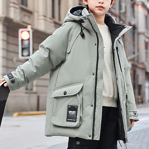 Bambini Ragazzi Giacca in piuma Giacca da esterno Giacca Imbottita Capispalla Blocco di colori Manica Lunga Tenere al caldo Antivento Cappotto All'aperto Quotidiano Essenziale Nero Viola Verde Inverno