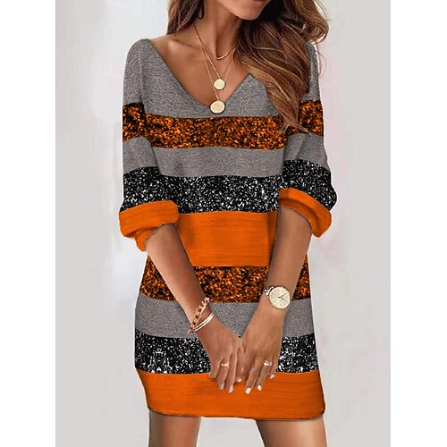 Abito Mini da Donna Abito Casual Abito Semi Formale Abito Petite Abito da Sole Abito Streetwear Maniche a Righe Vacanza Appuntamento Vestibilità Normale Floreale Maniche 3/4 V Collo Rosa Blu Viola