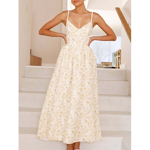 Per donna Abito maxi Abito a trapezio Abito Sottoveste Vacanza Casual All'aperto Uscire Vestibilità regolare Floreale Grafico Senza Maniche Scollo a V Blu Rosa Rosso Azzurro cielo Estate Primavera