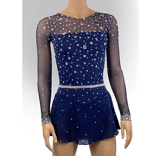 abito da pattinaggio artistico, abito da pattinaggio sul ghiaccio da donna e da ragazza, blu navy, schiena scoperta, orlo asimmetrico, maglia ad alta elasticità, abbigliamento da pattinaggio per