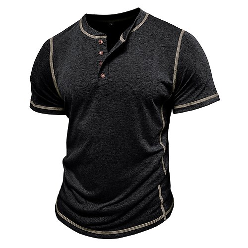 Per uomo Maglia Henley Camicia di cotone Maglietta Manica Corta Tinta unica Semplice Tinta unita Moda Designer Casual Blocco di colore Bottoni Henley All'aperto Casuale Quotidiano Estate Grigio scuro
