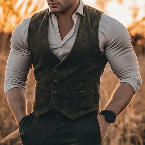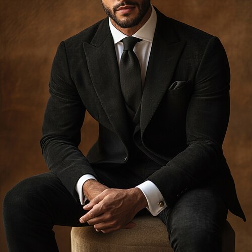 Abiti da uomo casual da cerimonia in velluto con revers a lancia, neri e marroni, tinta unita, vestibilità standard, 3 pezzi, monopetto, un bottone