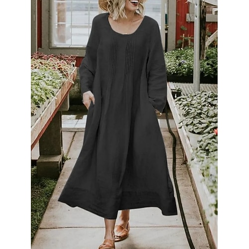 Per donna Abito maxi Abito a Tubino Casual Quotidiano Vestibilità regolare Semplice Manica Lunga Girocollo Blu Nero Rosso Verde Estate Primavera Autunno