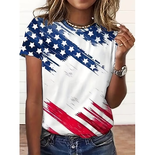 Giorno dell'Indipendenza Americana Per donna Maglietta Grafico Bandiera Vintage Moda Elegante Manica Corta Girocollo Top Regolari Quotidiano Weekend Stampato Blu Bianco Estate Primavera