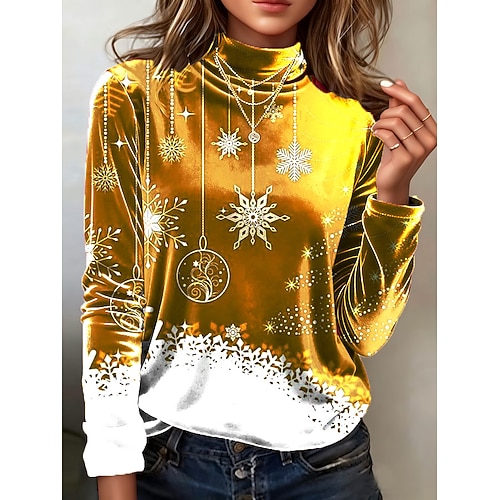 San Valentino Per donna Tunica Maglietta Grafico A Pois Fiocco di neve Elegante Vintage Moda Manica Lunga Dolcevita Top Regolari Quotidiano Uscire Weekend Stampato Blu Giallo Rosso Viola Verde Autunno