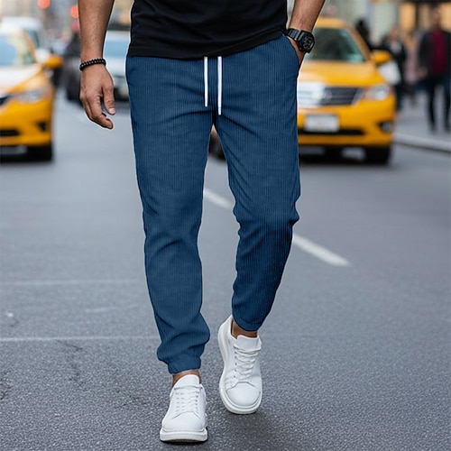 Per uomo Pantaloni Cargo Joggers Pantaloni Pantaloni in velluto a coste Pantaloni casual Coulisse Tasca Semplice Comodità Lunghezza intera All'aperto Casuale Quotidiano Moda Streetwear Cáqui Escuro