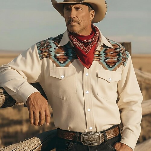 Per uomo Azteco Motivo Geometrico Etnico Camicia Camicia Western Camicia da cowboy Manica Lunga Vintage Retrò All'aperto Casuale Abbigliamento da lavoro Primavera Autunno Collo ripiegato Due tasche