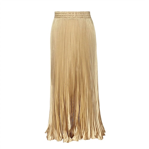 Per donna Gonna Linea A Moda Casual Maxi Vita Alta Gonne Semplice Pieghettato Micro-elastico Casual Quotidiano Weekend Rosso bordeaux Champagne Oro Estate Poliestere
