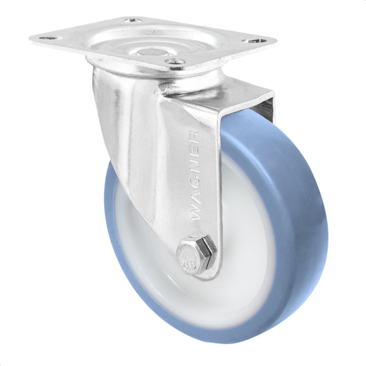 WAGNER Soft-Lenkrolle - Ø 125 mm, Stahl verzinkt, blau/weiß, Anschraubplatte, Tragkraft 100 kg - 04662501
