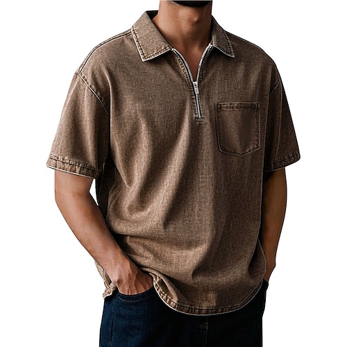 Per uomo Polo Polo con zip a un quarto Abbigliamento quotidiano Data Zip a un quarto Manica Corta Moda Essenziale Semplice Cerniera Tasca Estate Vestibilità regolare Nero Rosa Blu Viola Marrone Verde