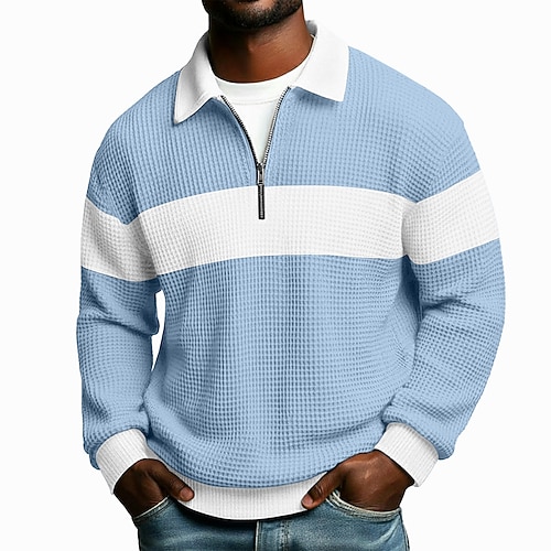 Per uomo Magliette Polo a Nido d'Ape Polo con zip a un quarto All'aperto Casual Zip a un quarto Manica Lunga Moda Moderno Tinta unica Lavorato a maglia Primavera Primavera Autunno Vestibilità comoda