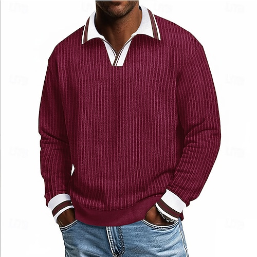 Per uomo Camicia di Velluto a Coste Polo Casuale Affari Colletto Polo a Coste Manica Lunga Moda Essenziale Tinta unica Strisce verticali Lavoro a maglia Caldo Autunno Inverno Tutte le stagioni