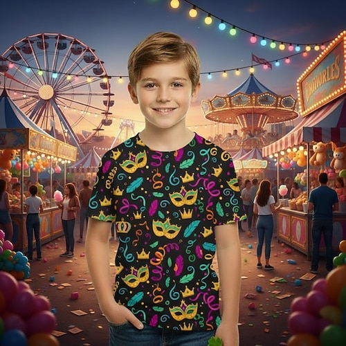 Carnevale Ragazzi 3D Grafico Maschera Martedì grasso Maglietta Manica Corta Stampa 3D Estate Primavera Sport Moda Streetwear Bambini 4-12 Anni Girocollo Casuale Quotidiano All'aperto Vestibilit