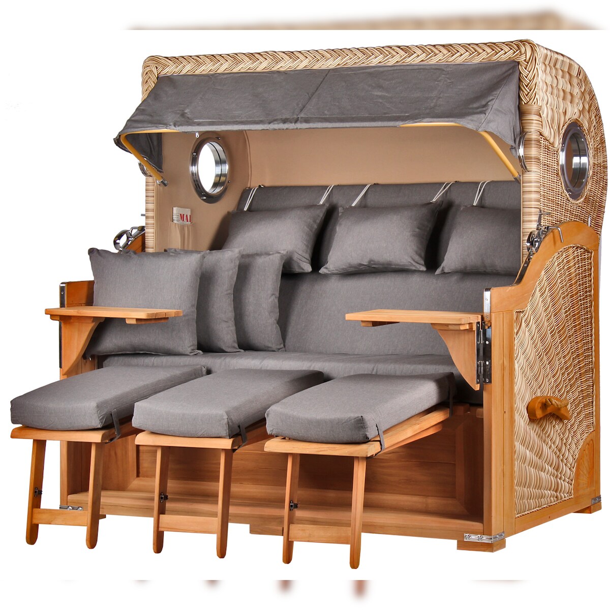 Mr. Deko Strandkorb Komplettset: Ammersee Grande XL Teak Bullauge - PE grau - Modell 529