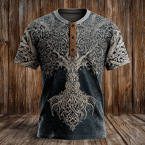 Per uomo Grafico Albero di Natale Maglietta Maglia Henley Manica Corta Vichingo Designer Retrò Vintage Casuale Quotidiano Streetwear Estate Primavera Tutte le stagioni Grigio scuro Nero Blu marino