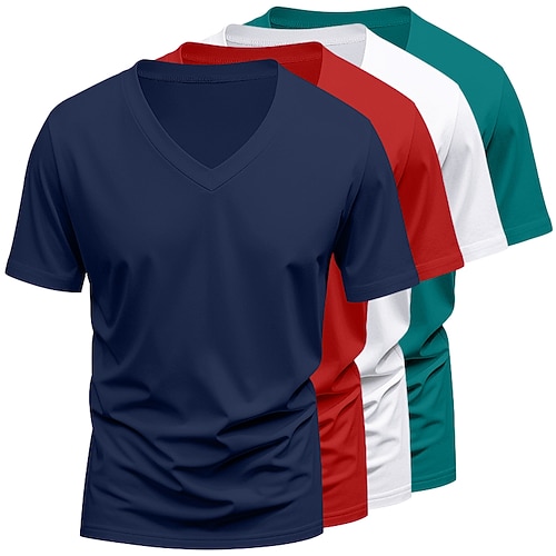Per uomo Maglietta Manica Corta Maniche Corte Scollo a V Estate Tutte le stagioni Tinta unica Semplice Designer Essenziale Moderno Contemporaneo 4 pezzi Confezione multipla Vacanza Streetwear Casuale