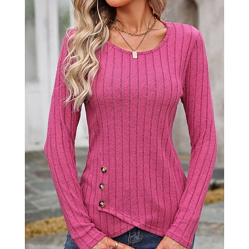 Per donna Maglietta Tinta unica Casual Manica Lunga Girocollo Top Regolari Uscire Weekend Bottoni Nero Blu turchese Marrone Bianco sporco Rosa Autunno Inverno
