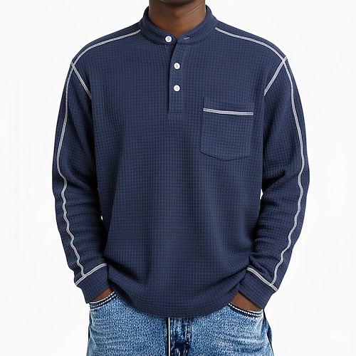 Per uomo Maglietta Waffle Maglietta Maglia Henley a nido d'ape Manica Lunga Henley Tutte le stagioni Tinta unica Casual Tasche Casuale Casa All'aperto Blu chiaro Verde chiaro Rosso Maglietta Top per