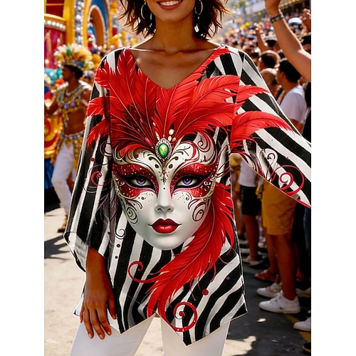 Blusa Donna Natale Grafica Vintage Tropicale Elegante Maniche 3/4 Collo Normale Top Regolari Stampa per le Feste Rossa Primavera Autunno Inverno