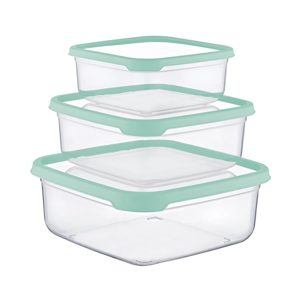 Set mit 3 luftdichten Lebensmittelbehältern, quadratische Form, grün, 7house