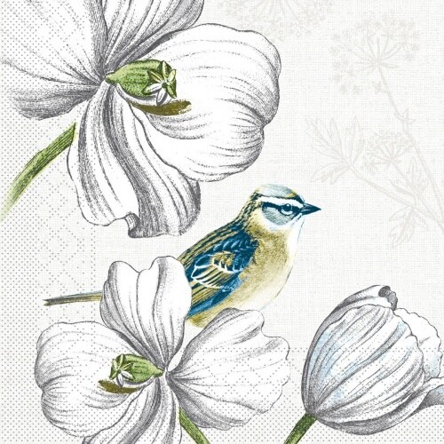 Mank Tissue Serviette Isabeau, 33 x 33 cm, 100 Stück - Floral Vögel Blumen
