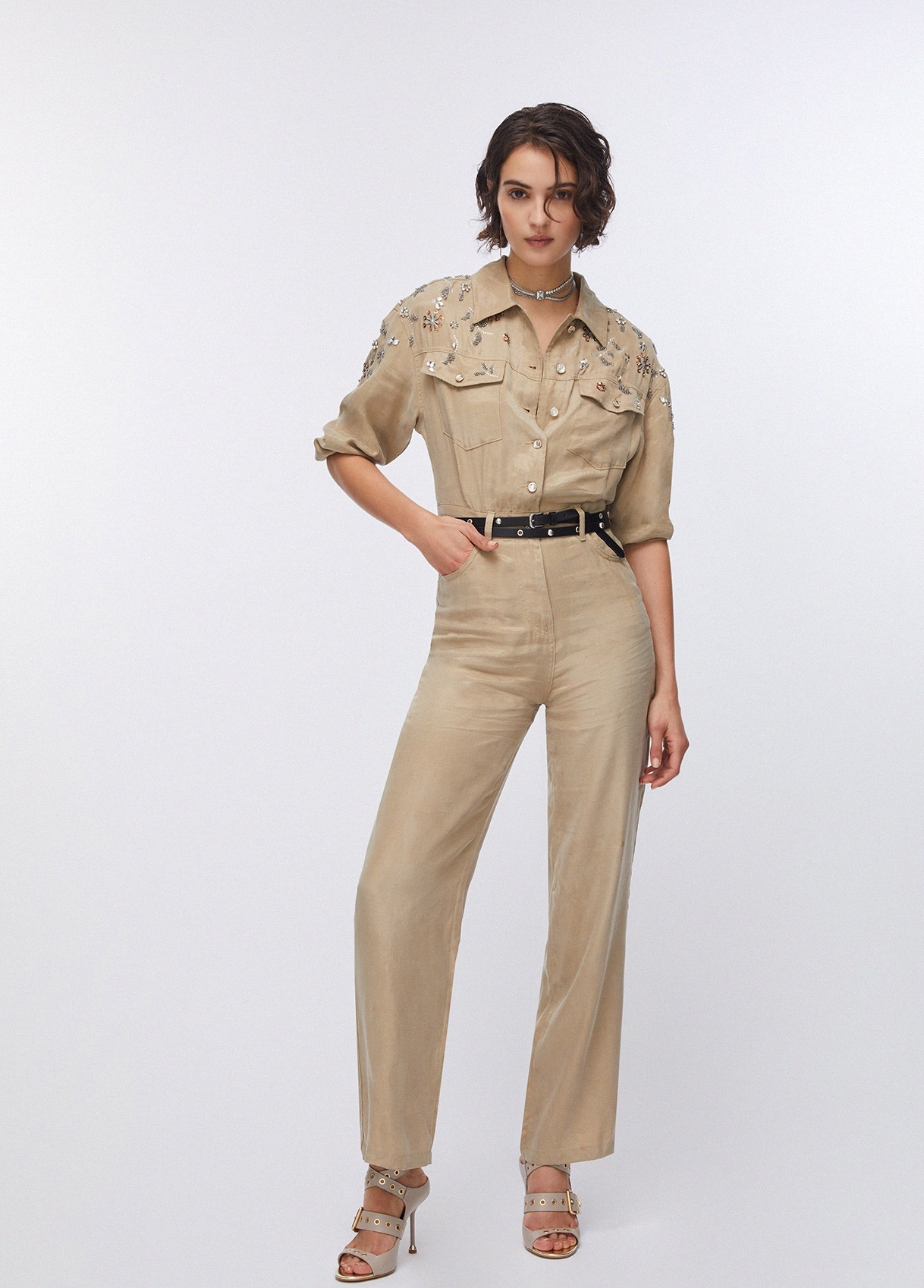 Liu Jo Overall Mit Schmuckstickereien, Hellbeige, 31