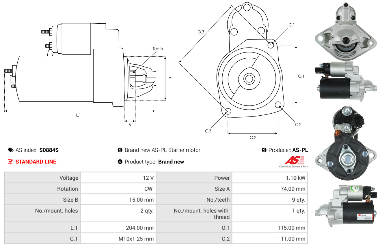 AS-PL Starter S0884S 12V für TOYOTA 28100-22040 228000-7591 28100-22030