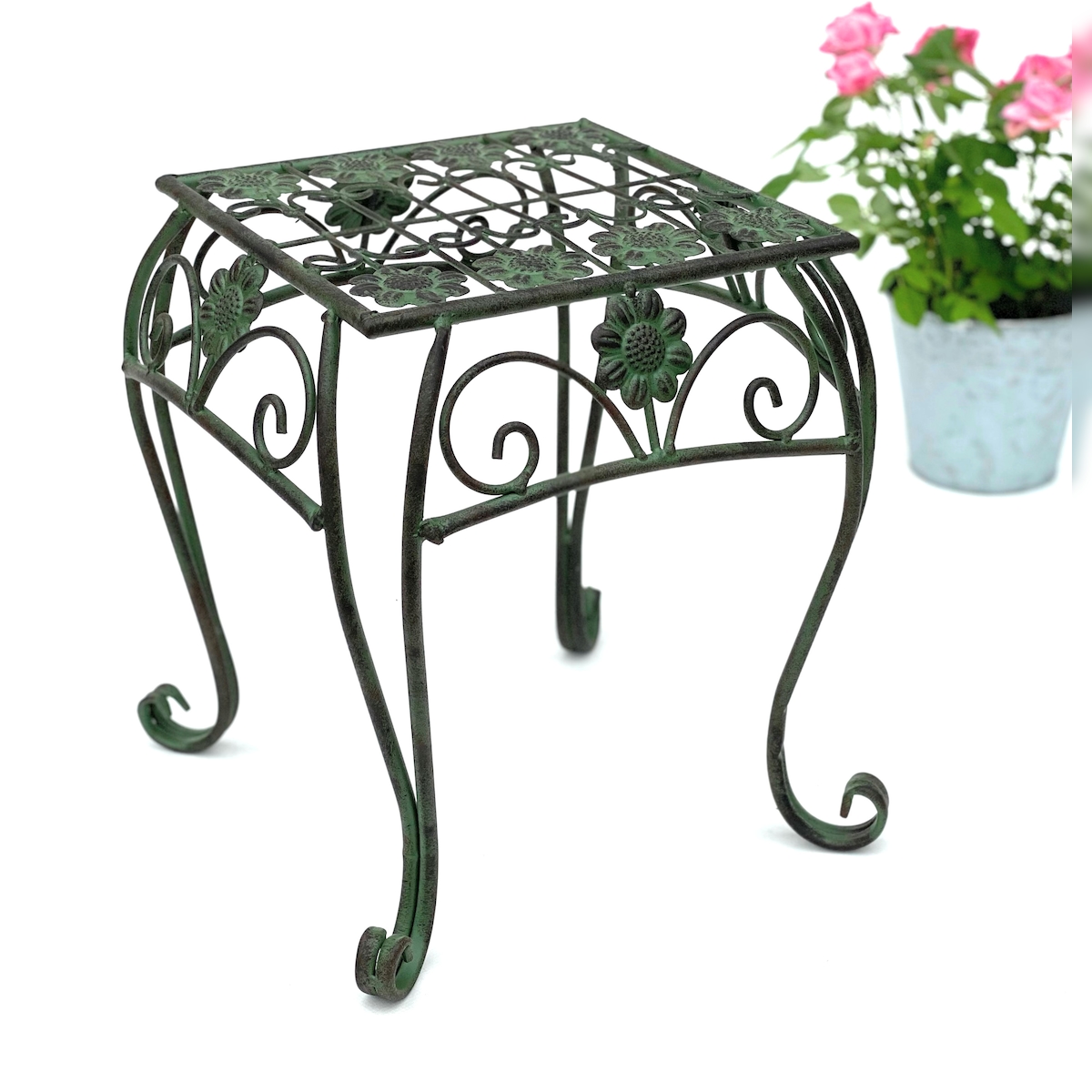 DanDiBo Blumenhocker Metall Grün Eckig 32 cm Blumenständer 96007 M Blumensäule Modern Pflanzenständer Pflanzenhocker Vintage