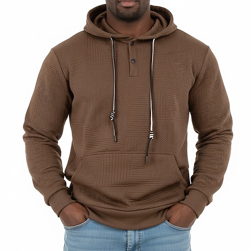 Per uomo Jacquard Felpa con cappuccio Maglione Felpa con cappuccio abbottonata Bianco Giallo Marrone Grigio chiaro Con Cappuccio Semplice Patchwork Blocco di colore Testurizzato Casuale Quotidiano