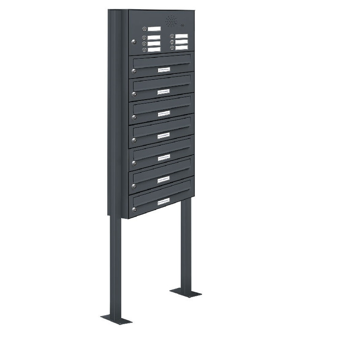 AL Briefkastensysteme 7 Fächer Premium Stand Briefkasten Anlage in RAL 7016 Anthrazit für Post A4, robust, wetterfest, Artikelnummer: 132P7S1KSP7016