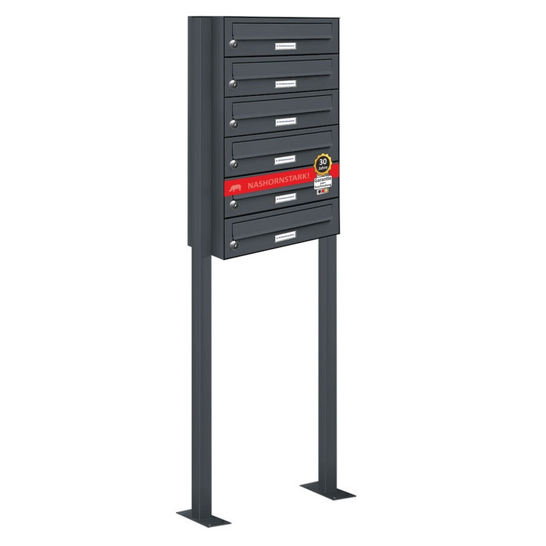 AL Briefkastensysteme 6 Fächer Premium Stand Briefkasten Anlage in RAL 7016 Anthrazit Grau, Post A4, robust, wetterfest, Artikelnummer: 132P6S1P7016