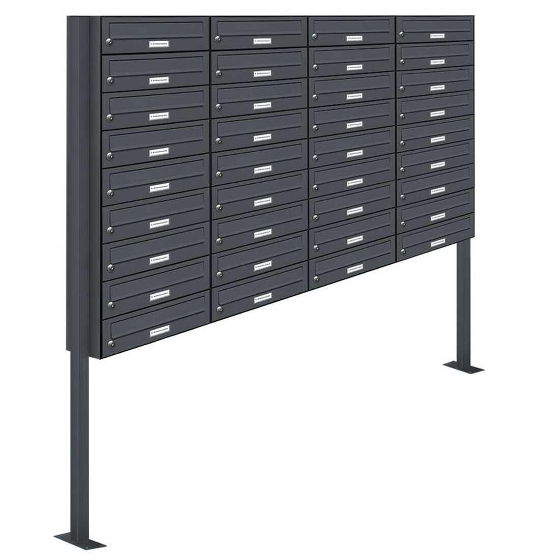 AL Briefkastensysteme 34 Fächer Premium Stand Briefkasten Anlage in RAL 7016 Anthrazit Grau, Post A4, robust, wetterfest, Artikelnummer: 132P34S4P7016