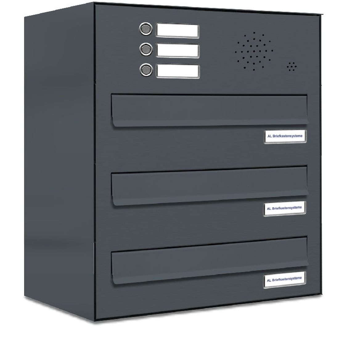 AL Briefkastensysteme 3 Fächer Premium Durchwurf Briefkasten in RAL 7016 Anthrazit Grau, Post A4, robust, wetterfest, Artikelnummer: 132P3DZ1KSP7016