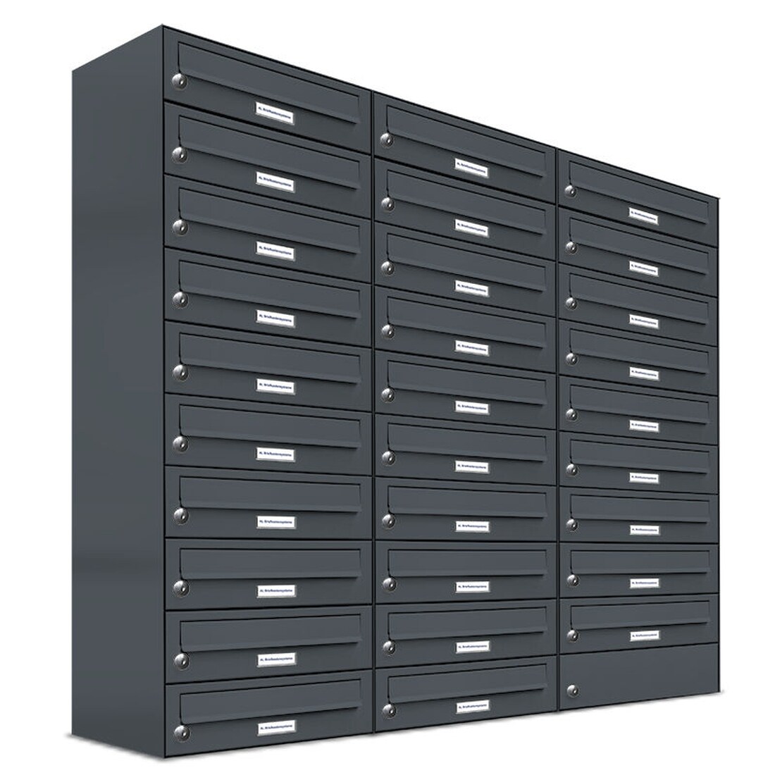 AL Briefkastensysteme 30 Fächer Premium Wand Briefkasten Anlage in RAL 7016 Anthrazit Grau, Post A4, robust, wetterfest, Artikelnummer: 132P30EA5P7016