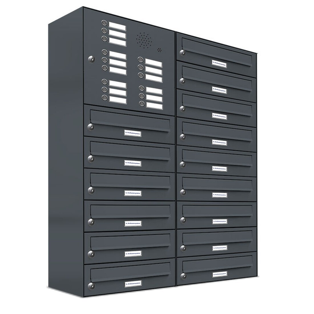 AL Briefkastensysteme 15 Fächer Premium Wand Briefkasten Anlage RAL 7016 Anthrazit Grau, Post A4, robust, wetterfest, Artikelnummer: 132P15EA2KSP7016