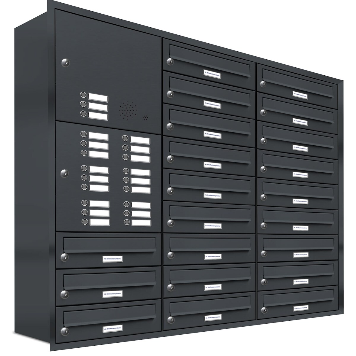 AL Briefkastensysteme 21 Fach Premium Unterputz Briefkasten Anlage mit Klingeln RAL 7016 Anthrazit Grau, A4, wetterfest, Artikelnummer 132P21U3KSP7016