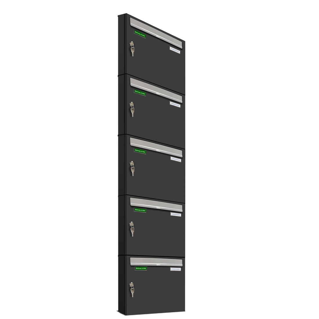 AL Briefkastensysteme 5 x Basic Wand Briefkasten in RAL 7016 Anthrazit Grau für Post A4, wetterfest, Artikelnummer: 431P5EA1P7016/9006