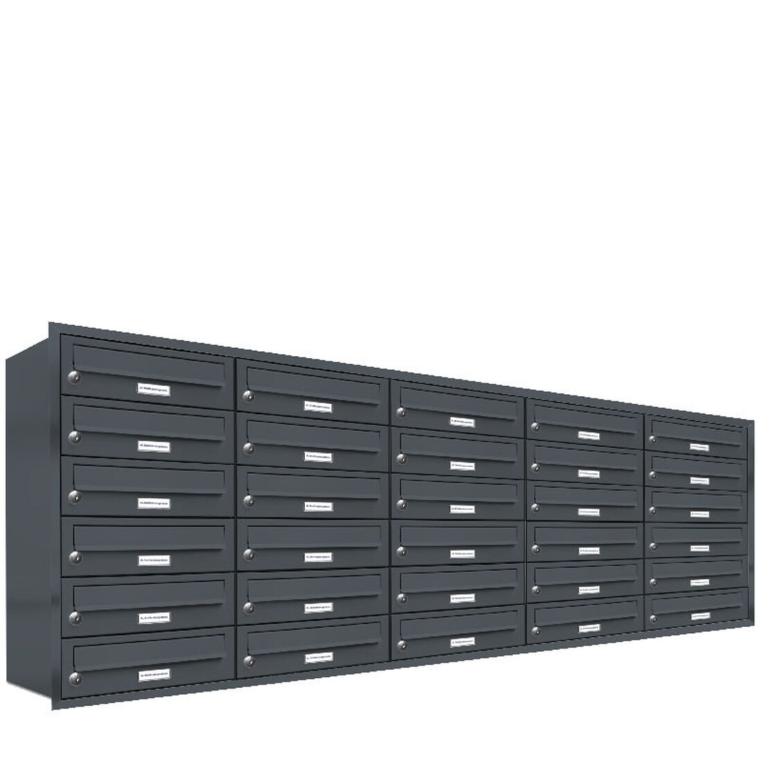 AL Briefkastensysteme 30 Fächer Premium Unterputz Briefkasten Anlage RAL 7016 Anthrazit Grau, Post A4, modern, wetterfest, Artikelnummer 132P30U5P7016