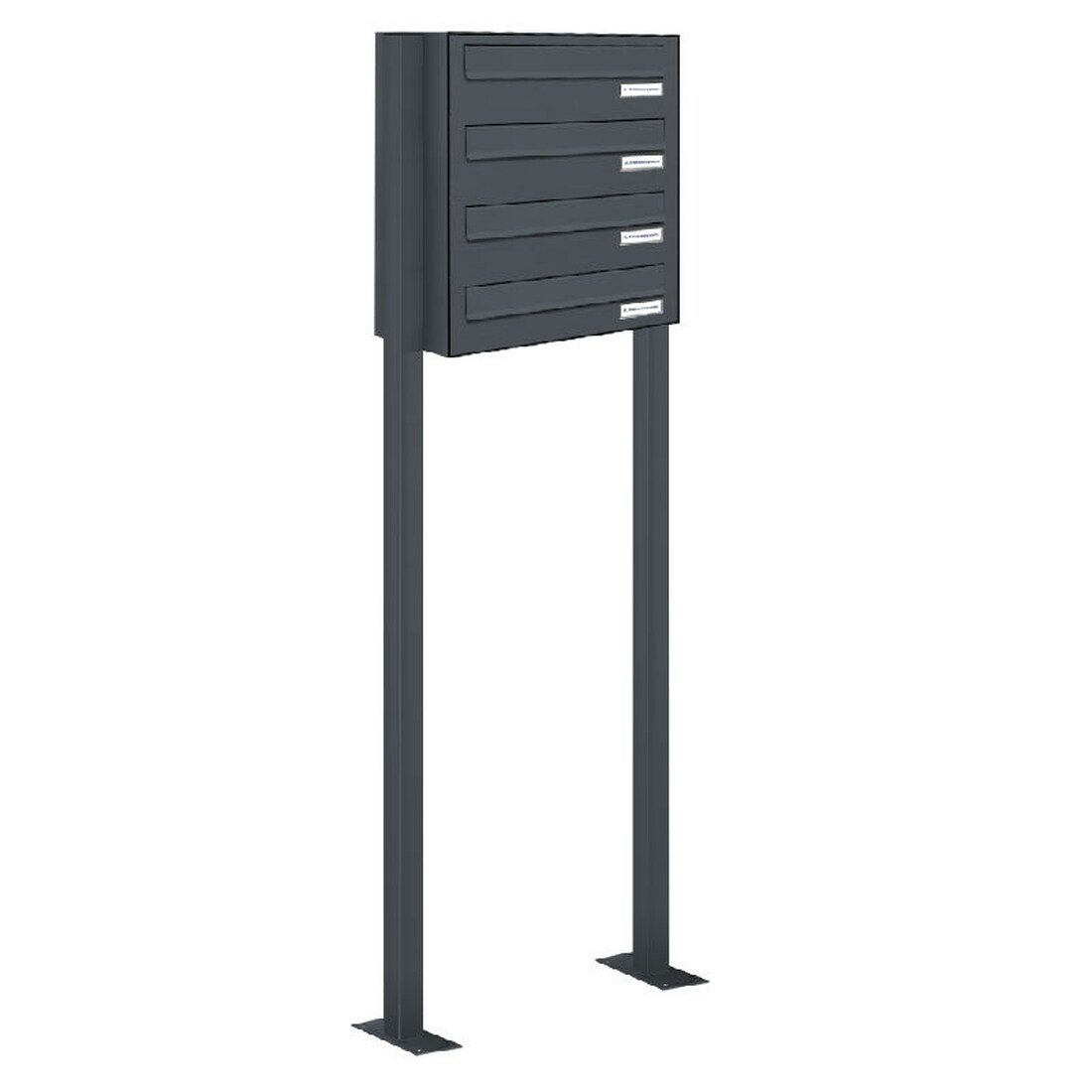AL Briefkastensysteme 4 Fächer Premium Stand Briefkasten Anlage in RAL 7016 Anthrazit Grau, Post A4, robust, wetterfest, Artikelnummer: 132P4DZS1P7016